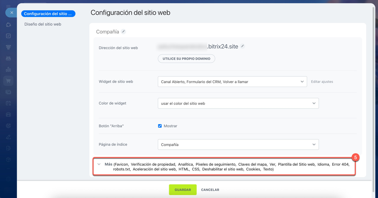 6-7. Ve a Otros ajustes y desactiva la opción Desarrollado por Bitrix24.