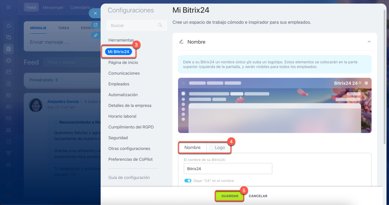 - Si es posible cambiar el nombre y el logo de Bitrix24