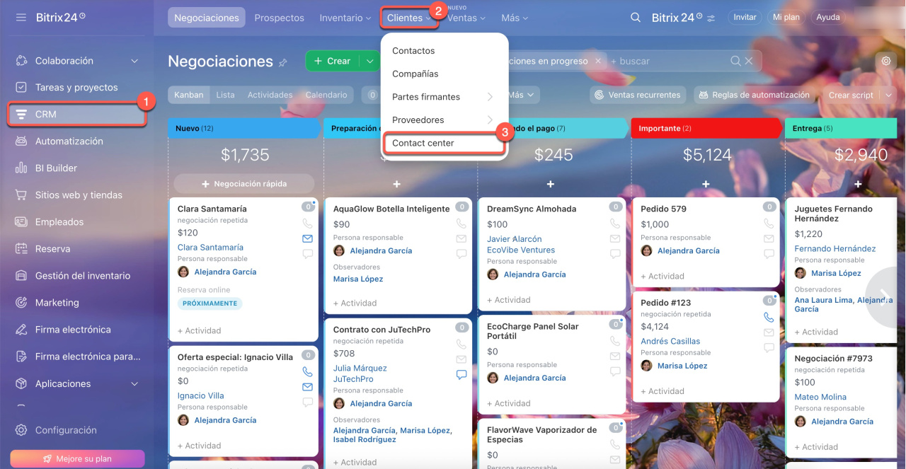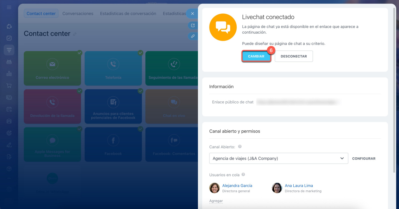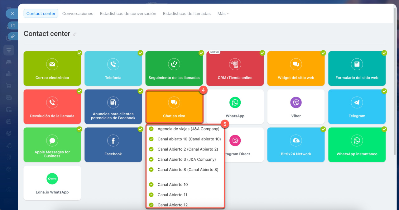 1-4. Ve a la sección de CRM > Clientes > Contact center > Chat en vivo.