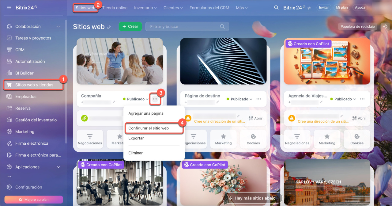 1-2. Ve a la sección de Sitios web y tiendas > Sitios web.