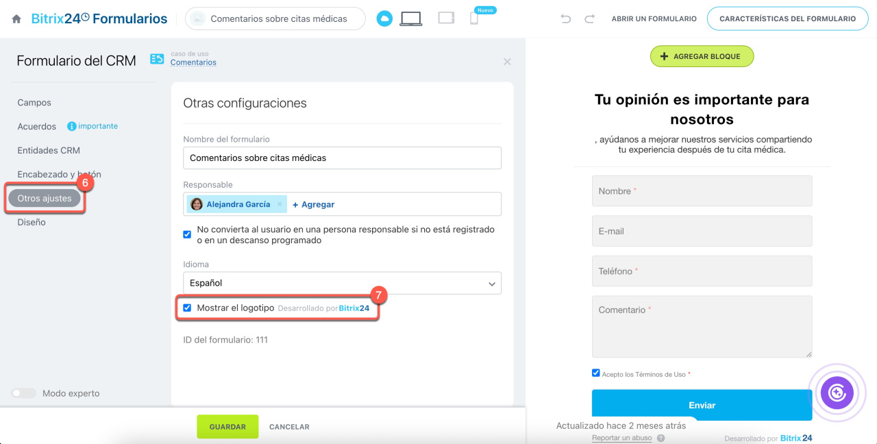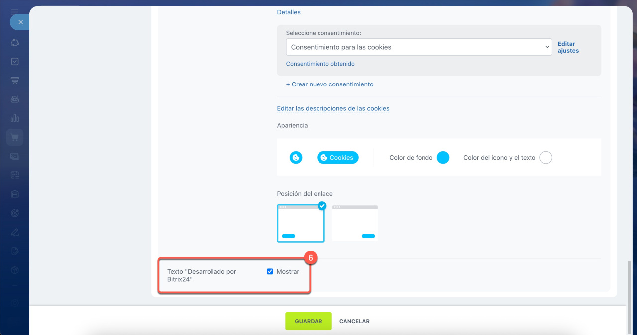 6. Desactiva la opción Desarrollado por Bitrix24.
