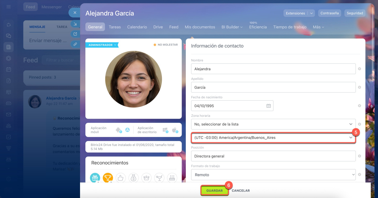 5-6. Elige la zona horaria deseada de la lista y guarda los cambios.