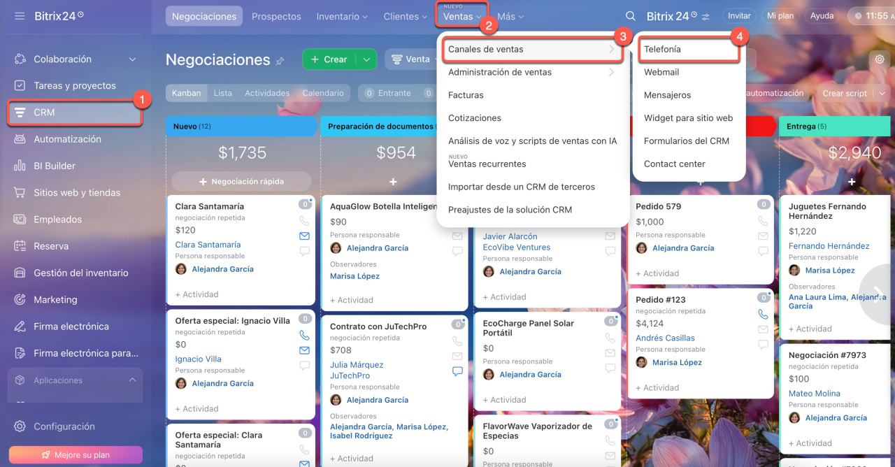 1-4. Ve a la sección de CRM > Ventas > Canales de ventas > Telefonía.