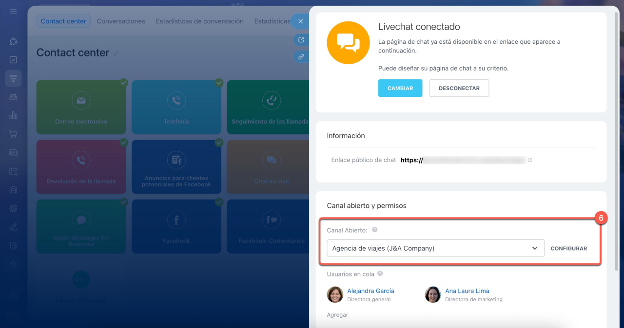 - Canales abiertos: recopila todos los mensajes de clientes de redes sociales y mensajeros en un único chat.