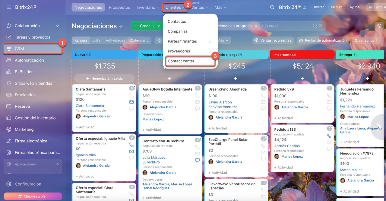 1-3. Ve a la sección de CRM > Clientes > Contact center.