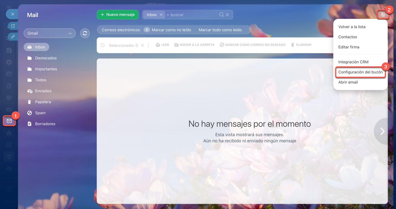 1-3. Ve a la sección de Webmail > Configuraciones (⚙️) > Configuración del buzón.