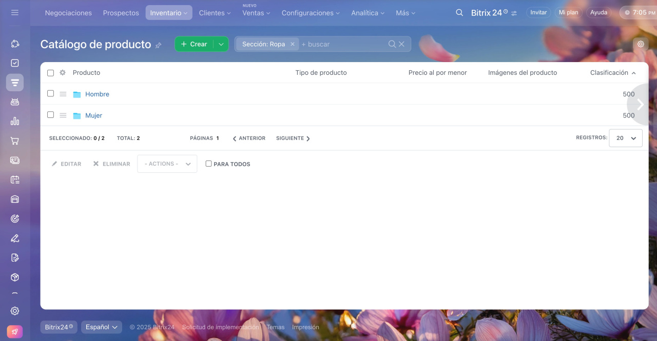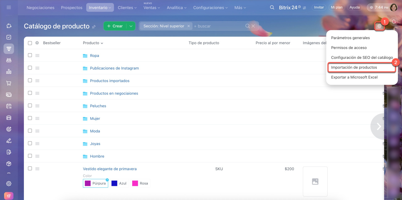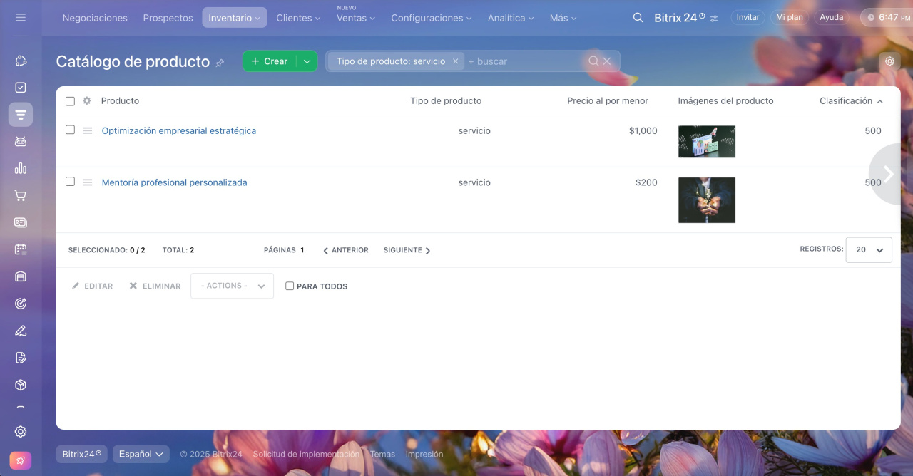 - Subir una lista existente de productos y servicios a Bitrix24.