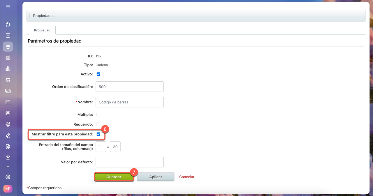6-7. Habilita la opción Mostrar filtro para esta propiedad y guarda los cambios.