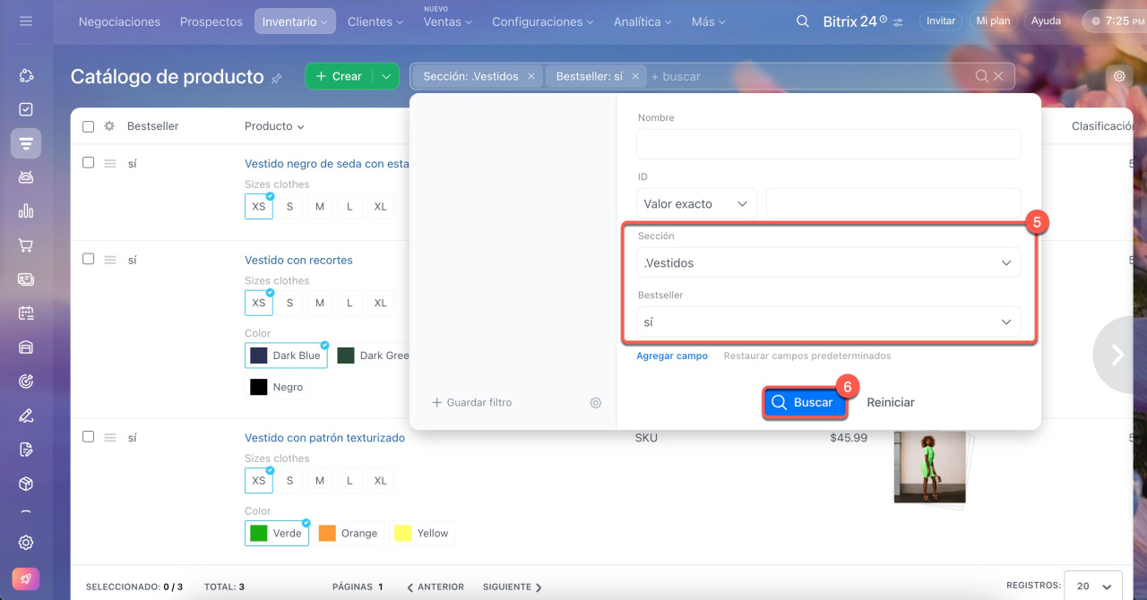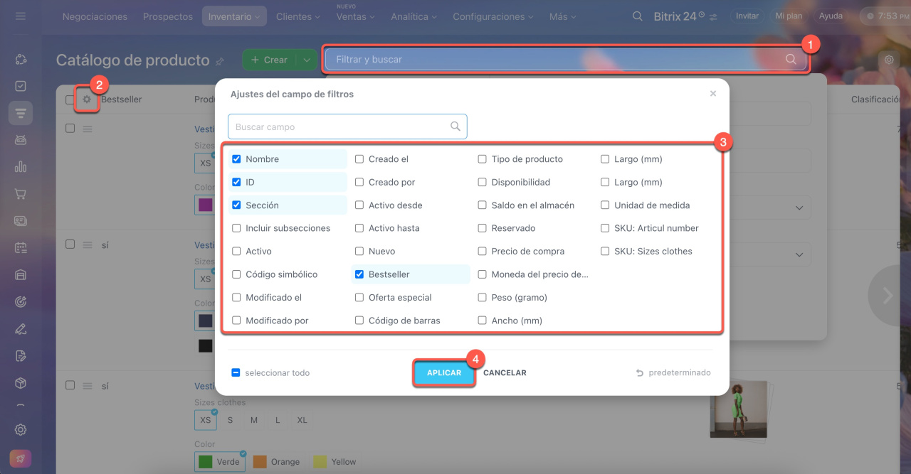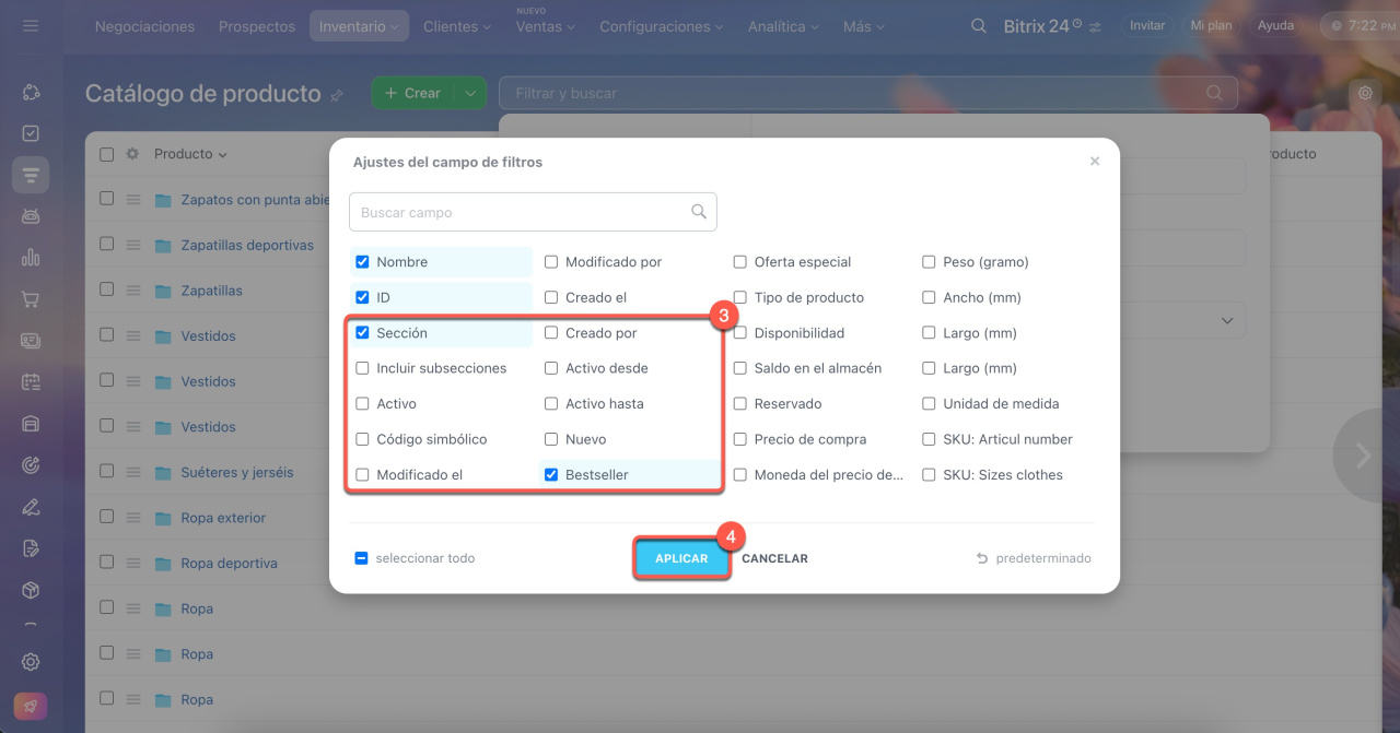 3-4. Selecciona los campos necesarios, como Sección y Bestseller. Haz clic en Aplicar.