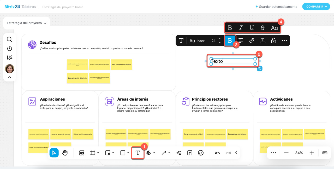 - Los Tableros de Bitrix24 son espacios de trabajo colaborativo donde los equipos pueden reunir ideas, debatir diseños, planificar presentaciones y visualizar procesos sin salir de la plataforma.