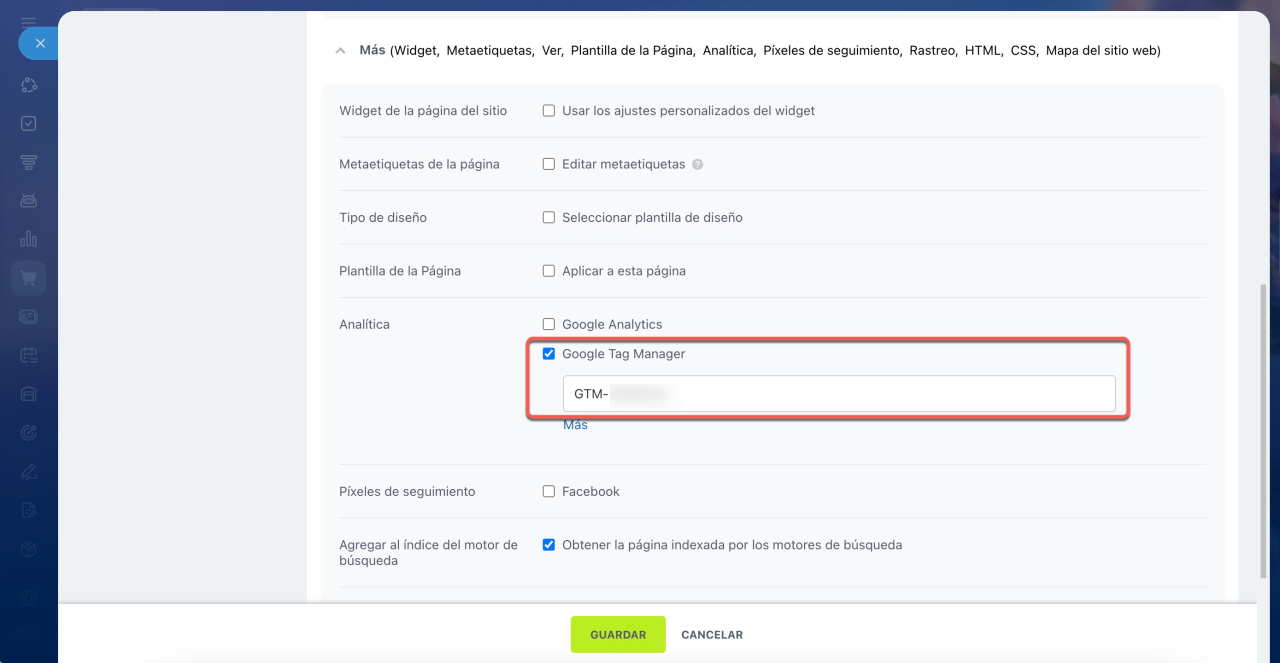 Contenedor de Google Tag Manager en sitios web de Bitrix24