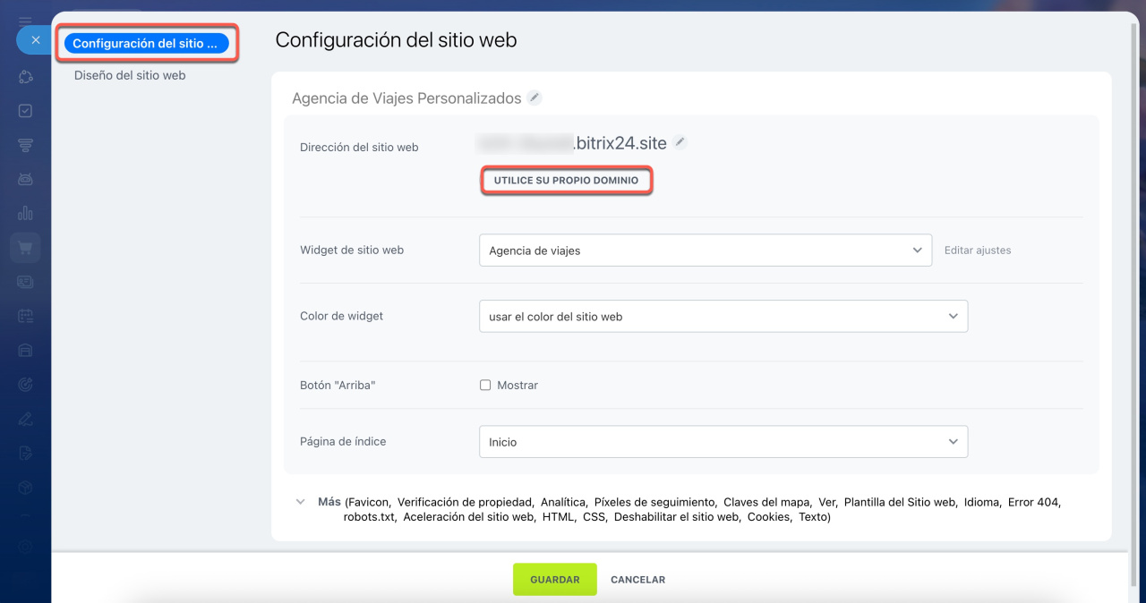 - ¿Qué configuraciones SEO están disponibles para los sitios web?