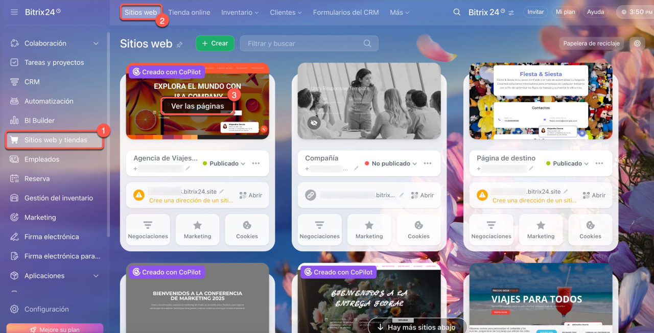 El número de sitios web que puedes publicar depende de tu plan de Bitrix24: