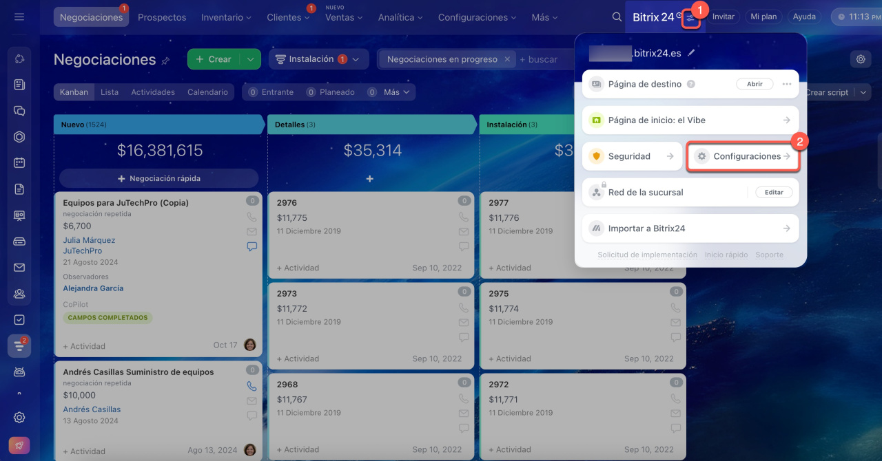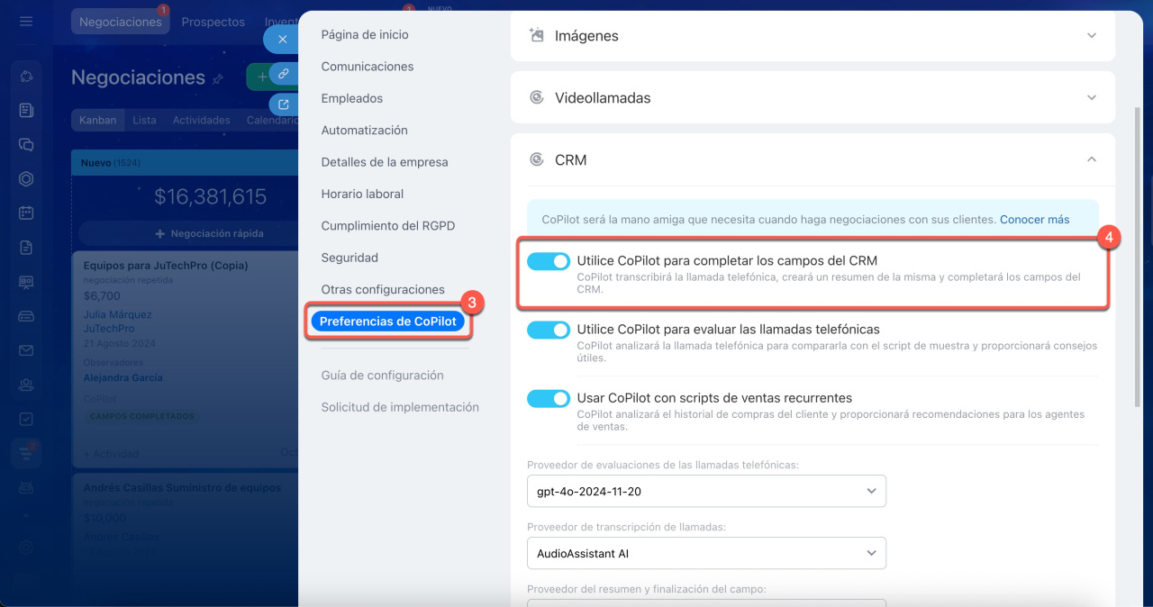 1. Habilita CoPilot en CRM en la configuración de Bitrix24.