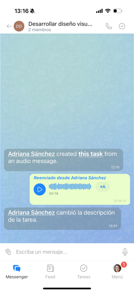 Las instrucciones ya no se pierden en los chats: todo lo que dices en un mensaje de voz o en una nota de video se convierte en una tarea clara para tu equipo.