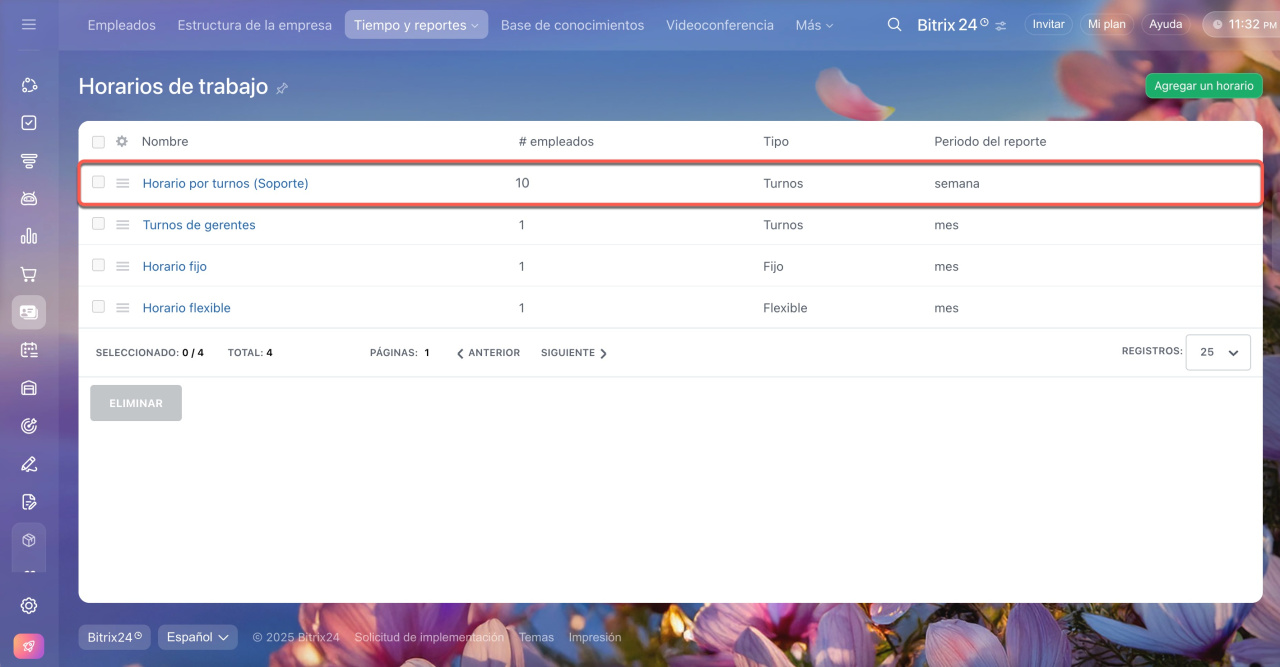 - Crea horarios fijos, flexibles o por turnos en Bitrix24.