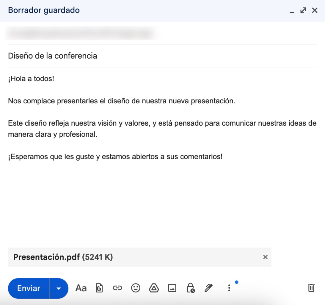 El usuario externo puede enviar un correo electrónico con archivos adjuntos de hasta 14 MB a esta dirección.
