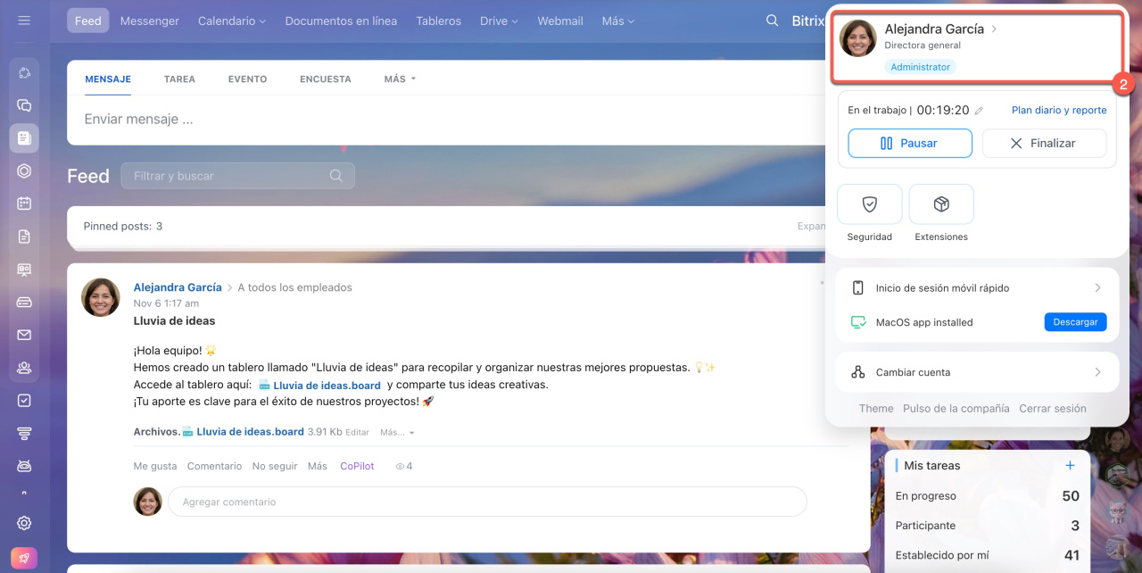 - Los usuarios externos pueden publicar mensajes en el Feed de Bitrix24.