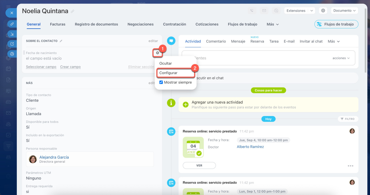 - Puedes configurar campos específicos como obligatorios en contactos, compañías y otros elementos del CRM.