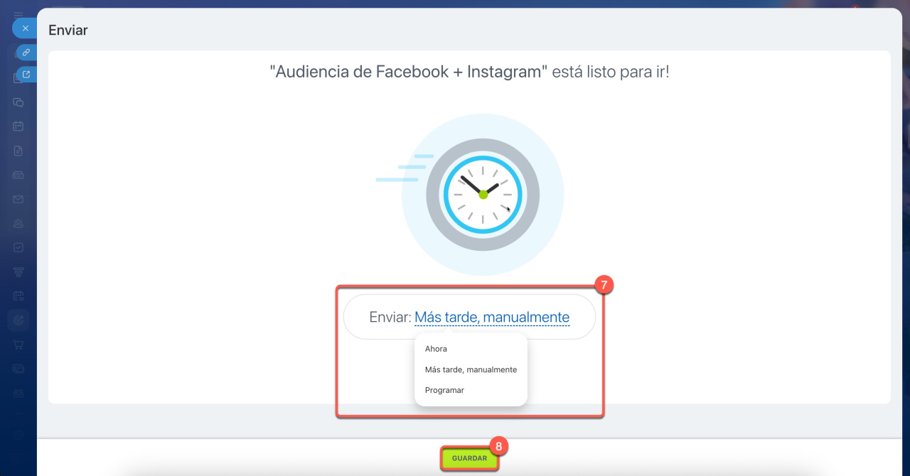 - Haz clic en Seleccionar segmento y añade clientes desde el CRM.