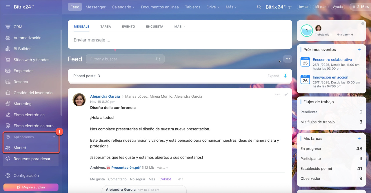 - Puedes utilizar aplicaciones del Market, así como las funciones de importación y exportación de Bitrix24.