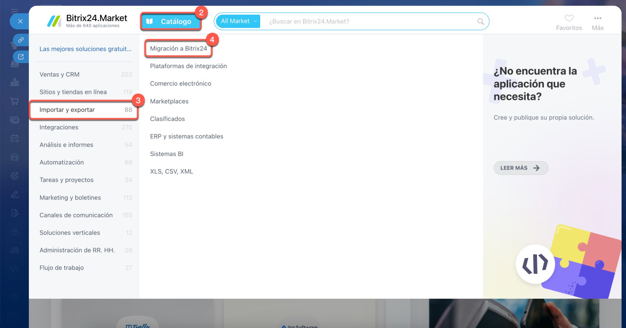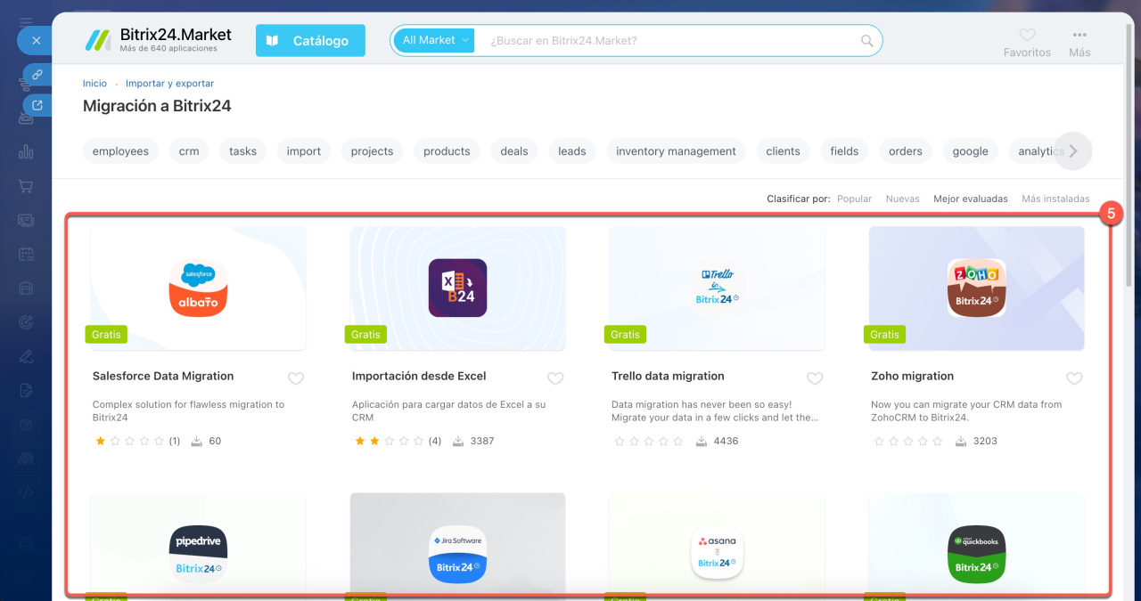 - Elige la aplicación adecuada para migrar tus datos a Bitrix24.