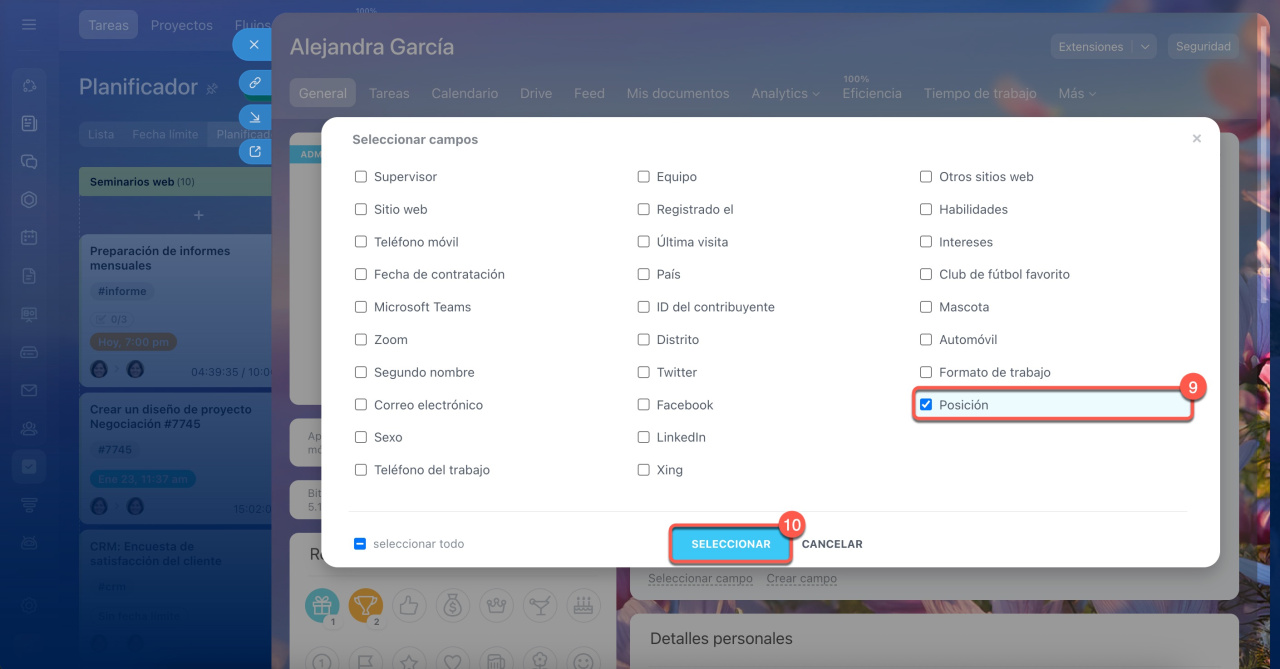 8–10. Haz clic en Seleccionar campo, añade el campo que necesite y confirma los cambios.