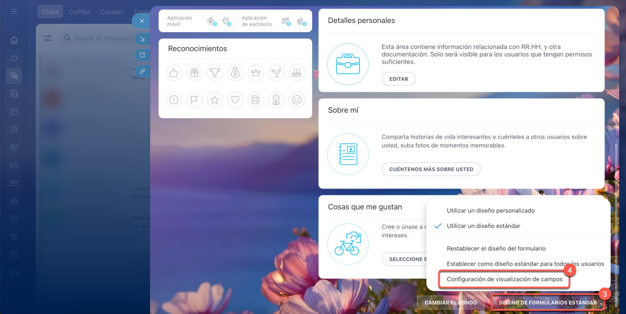No es posible ocultar campos específicos del perfil solo para ciertos empleados. La configuración de visualización es general para todos y la define el administrador.