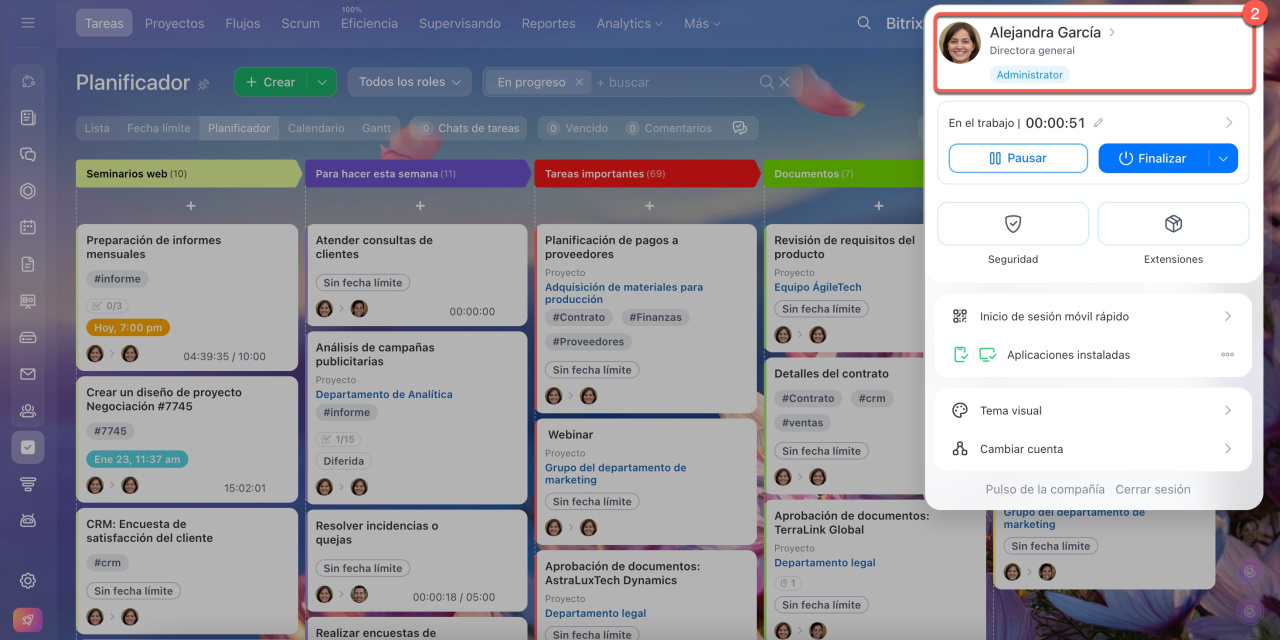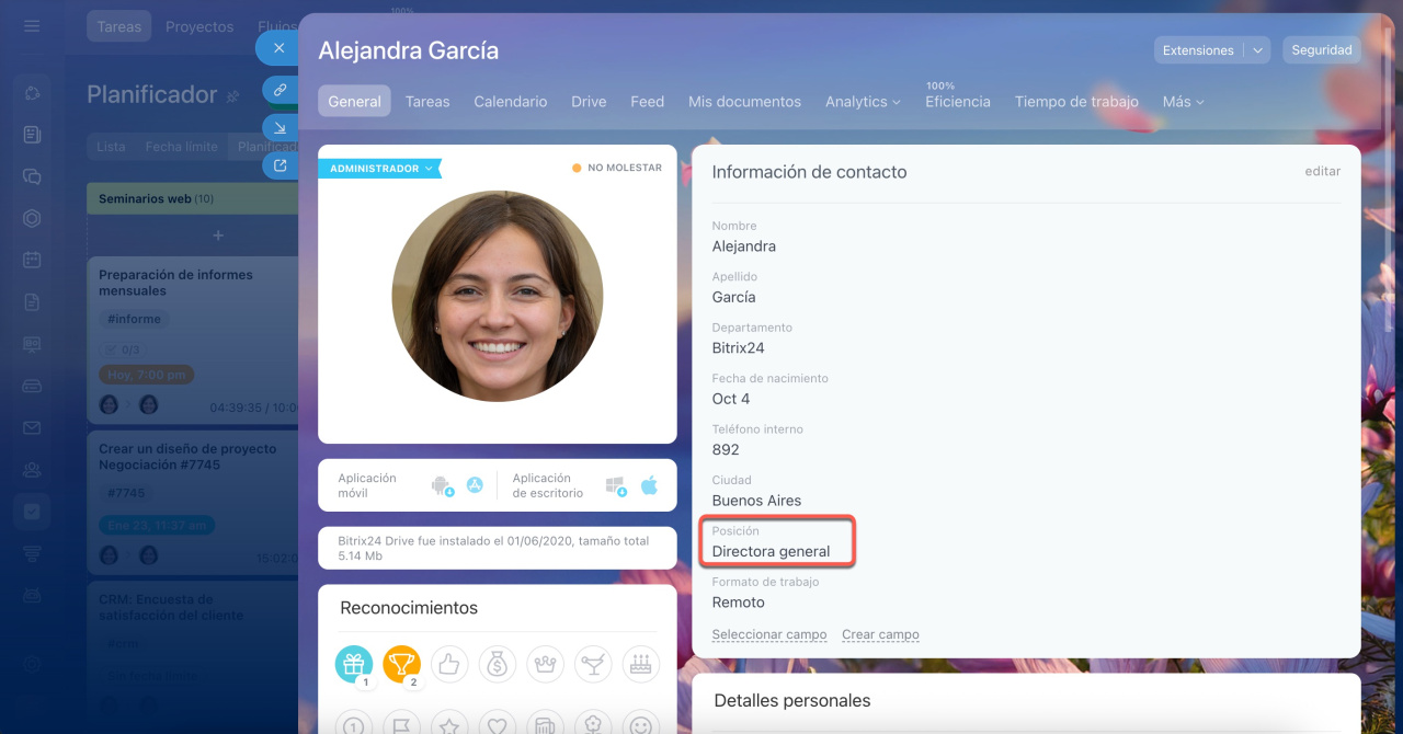 En Bitrix24, cada empleado cuenta con un perfil personal y un widget. El perfil muestra información básica como departamento, puesto, contactos e intereses. Desde el widget, se puede gestionar la cuenta personal: cambiar la contraseña, modificar el tema de diseño, entre otras opciones. A continuación respondemos las preguntas más frecuentes sobre el perfil y el widget del empleado.