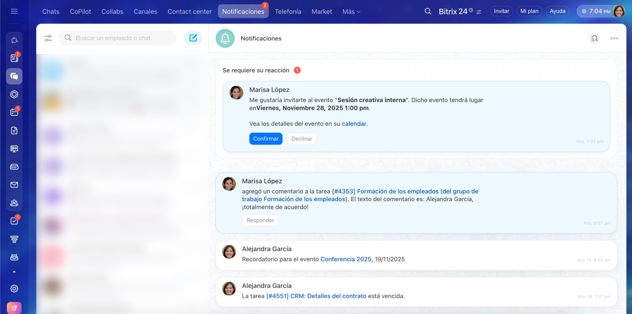 Notificaciones en Bitrix24: nueva interfaz y funciones