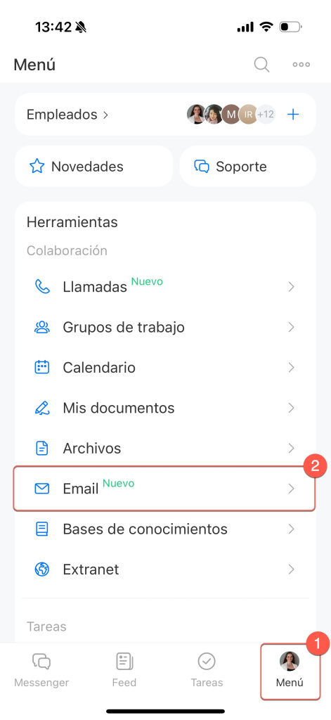 La aplicación móvil ahora cuenta con una sección dedicada al correo electrónico. Puedes conectar buzones y gestionar correos directamente desde tu teléfono.