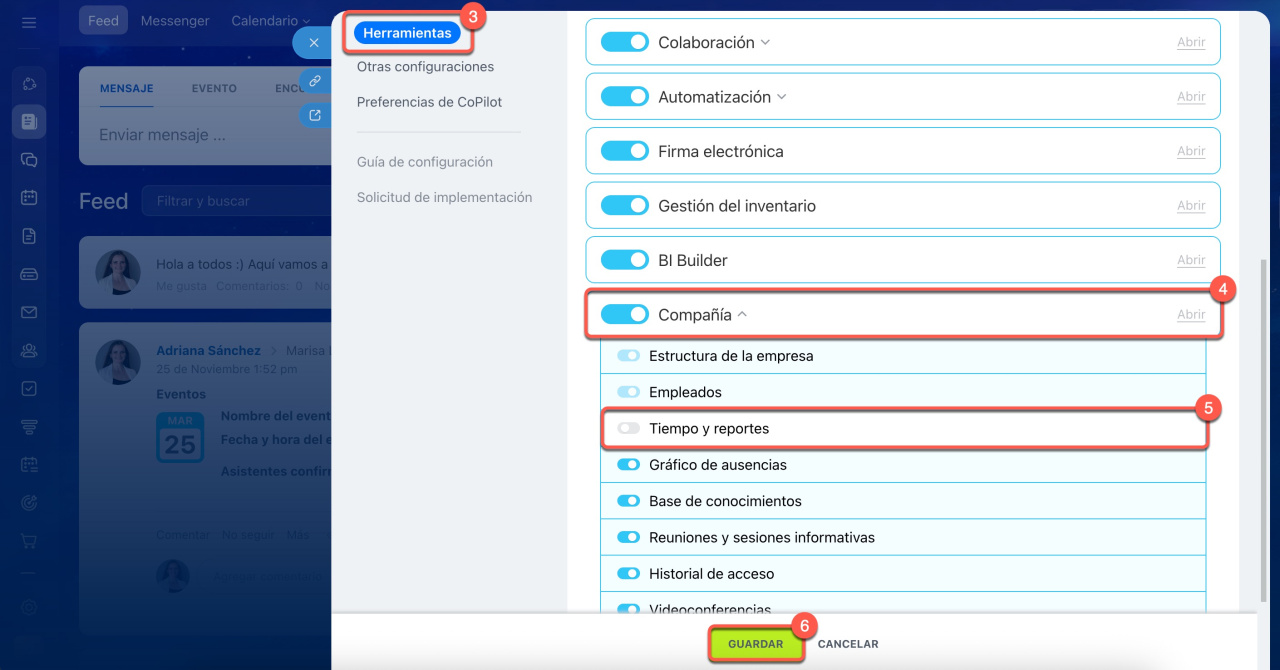 5-6. Desactiva la opción Tiempo y reportes y guarda los cambios.