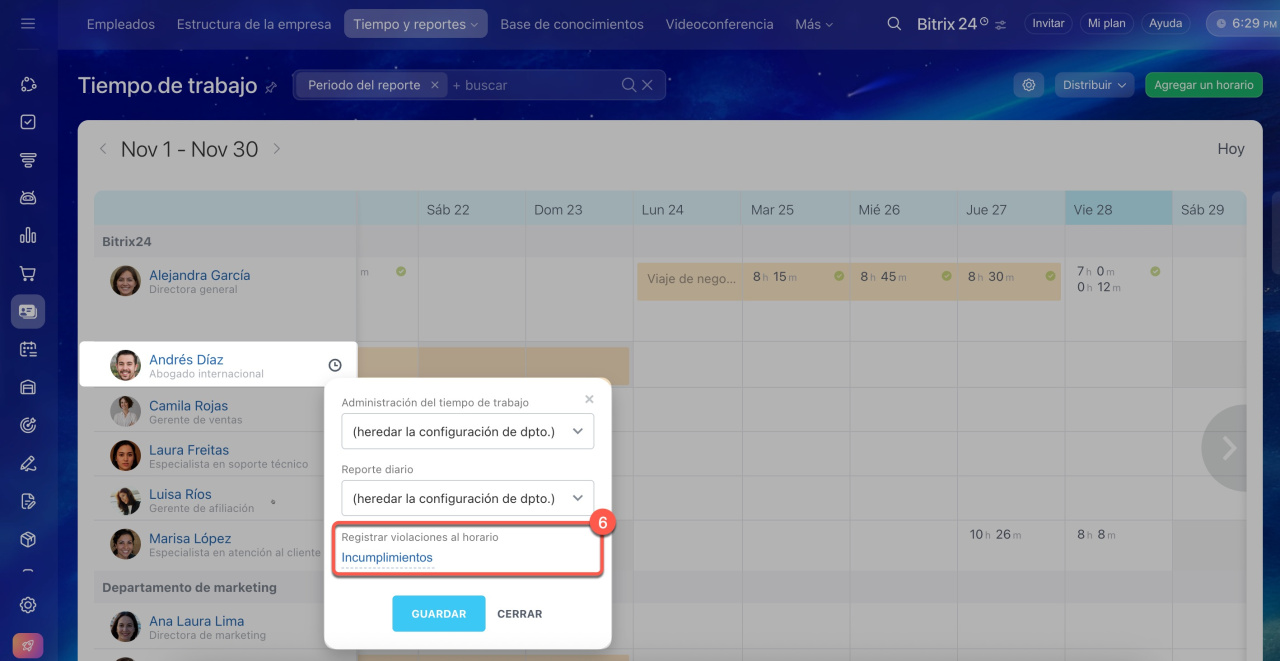 6. También puedes configurar incumplimientos personales para empleados específicos.