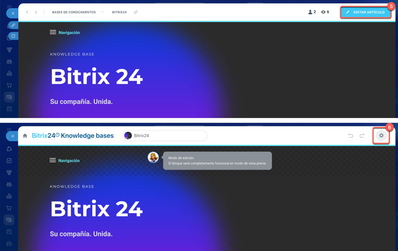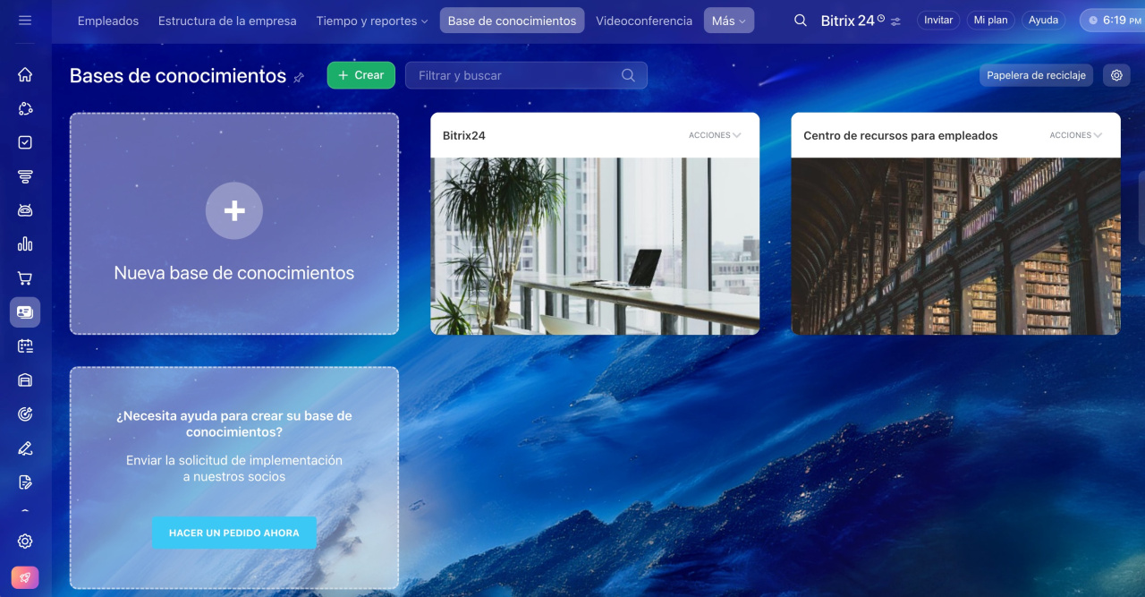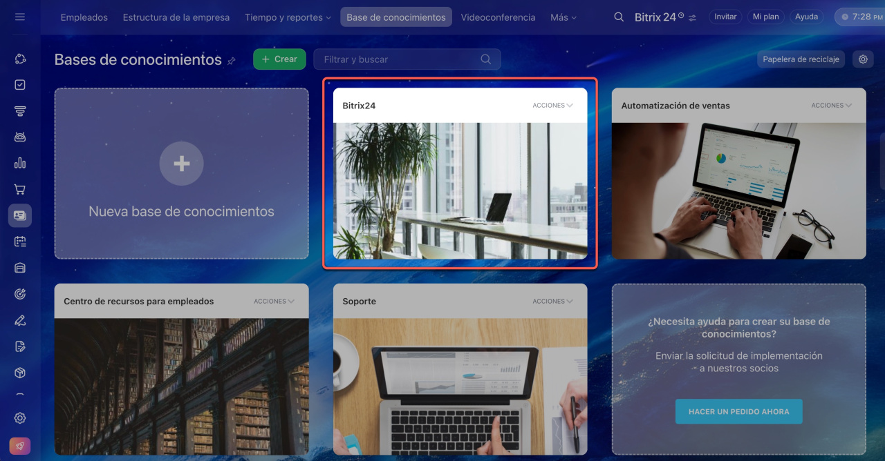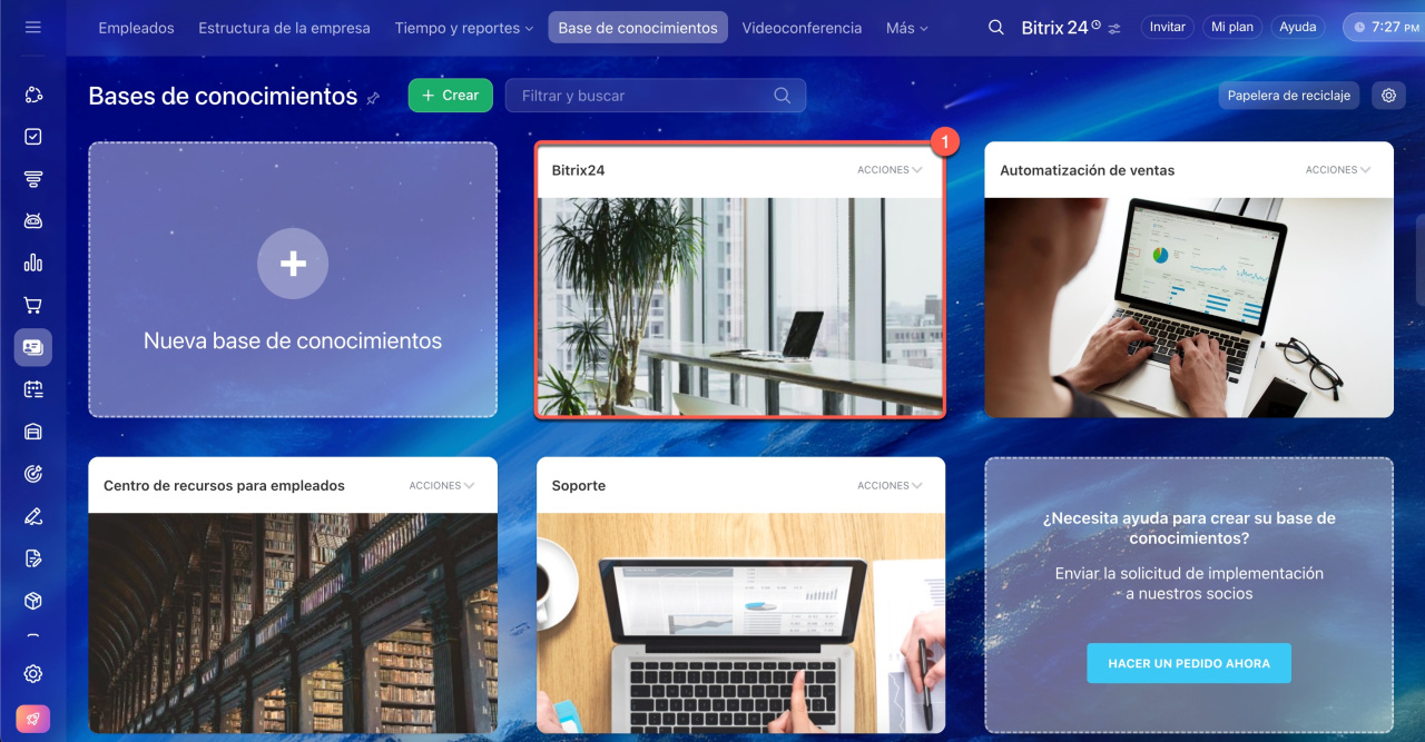 Las bases de conocimientos están disponibles para todos los usuarios de Bitrix24, pero las funcionalidades varían según el plan.