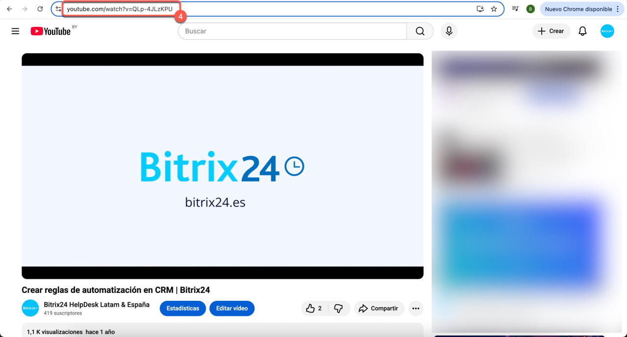 - Pega la URL en el campo Enlace de video en Bitrix24.