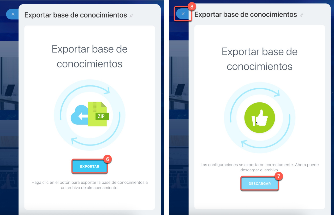 La importación y exportación de bases de conocimientos están disponibles en todos los planes.