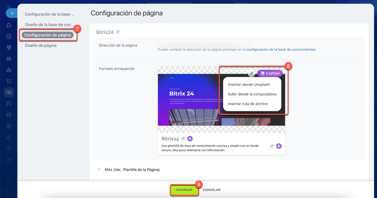 - Cómo cambiar la portada de la base de conocimientos