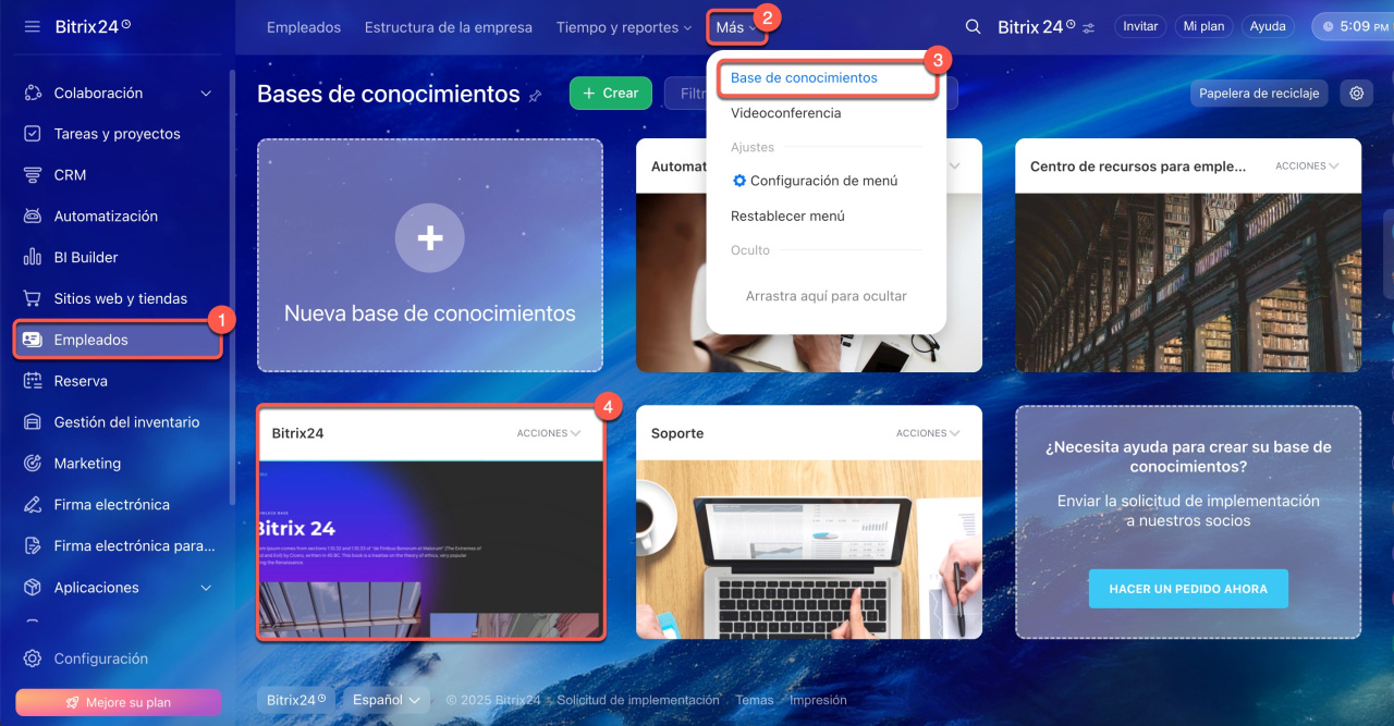 1-3. Accede a Empleados > Más > Base de conocimientos.