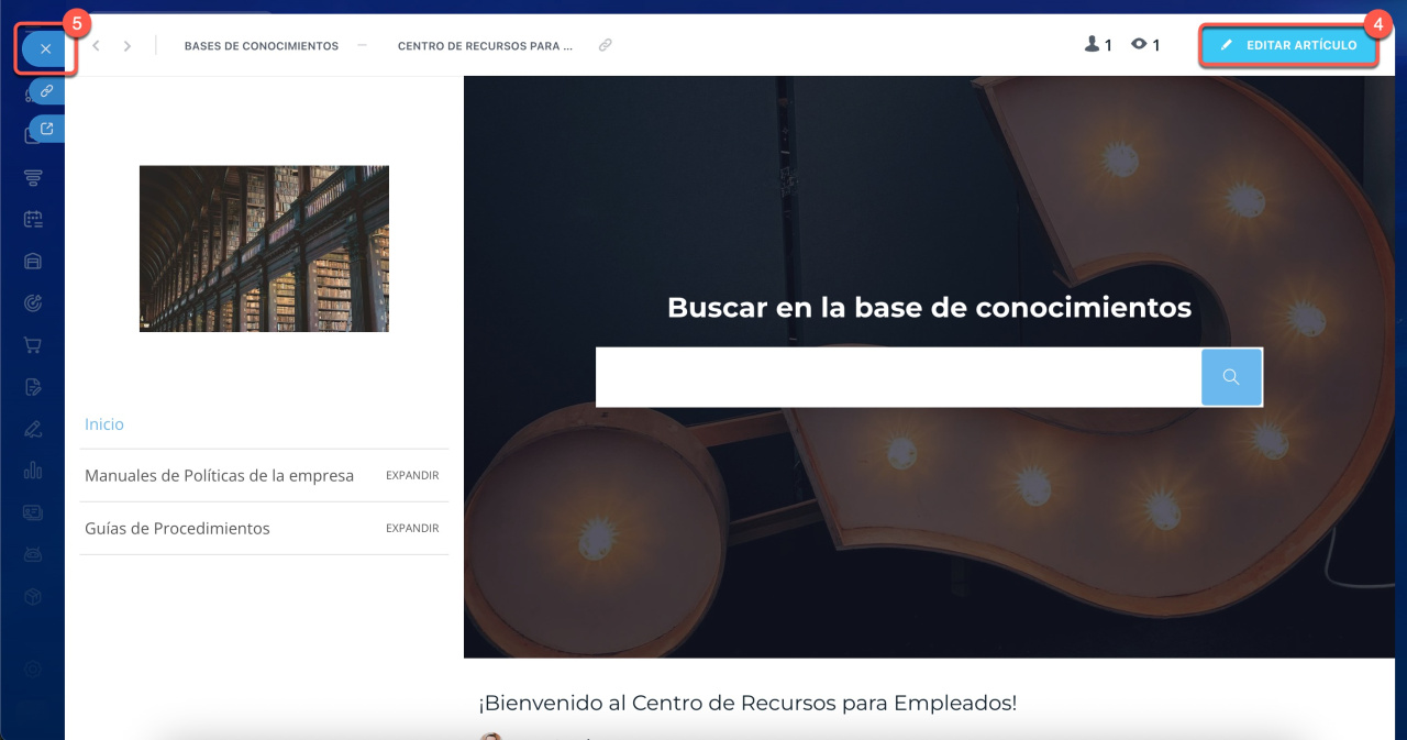 - Visualización permitida: el empleado verá el apartado y las bases de conocimientos permitidas.