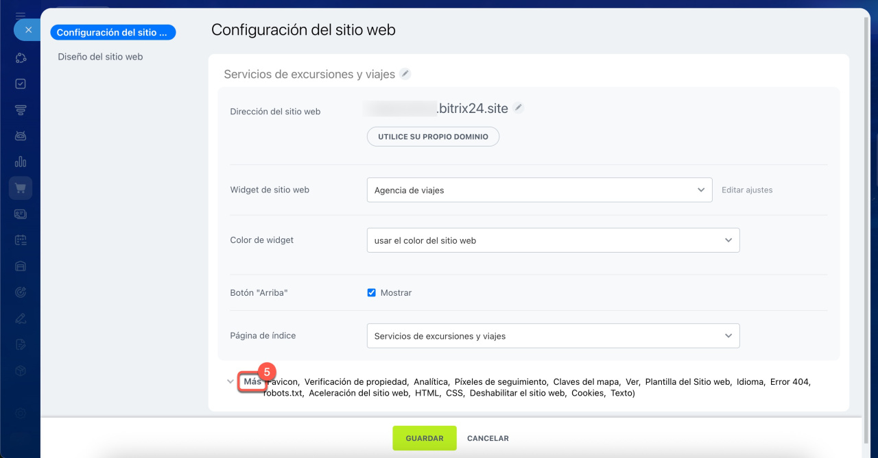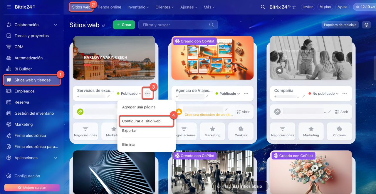 1-2. Accede a Sitios web y tiendas > Sitios web.