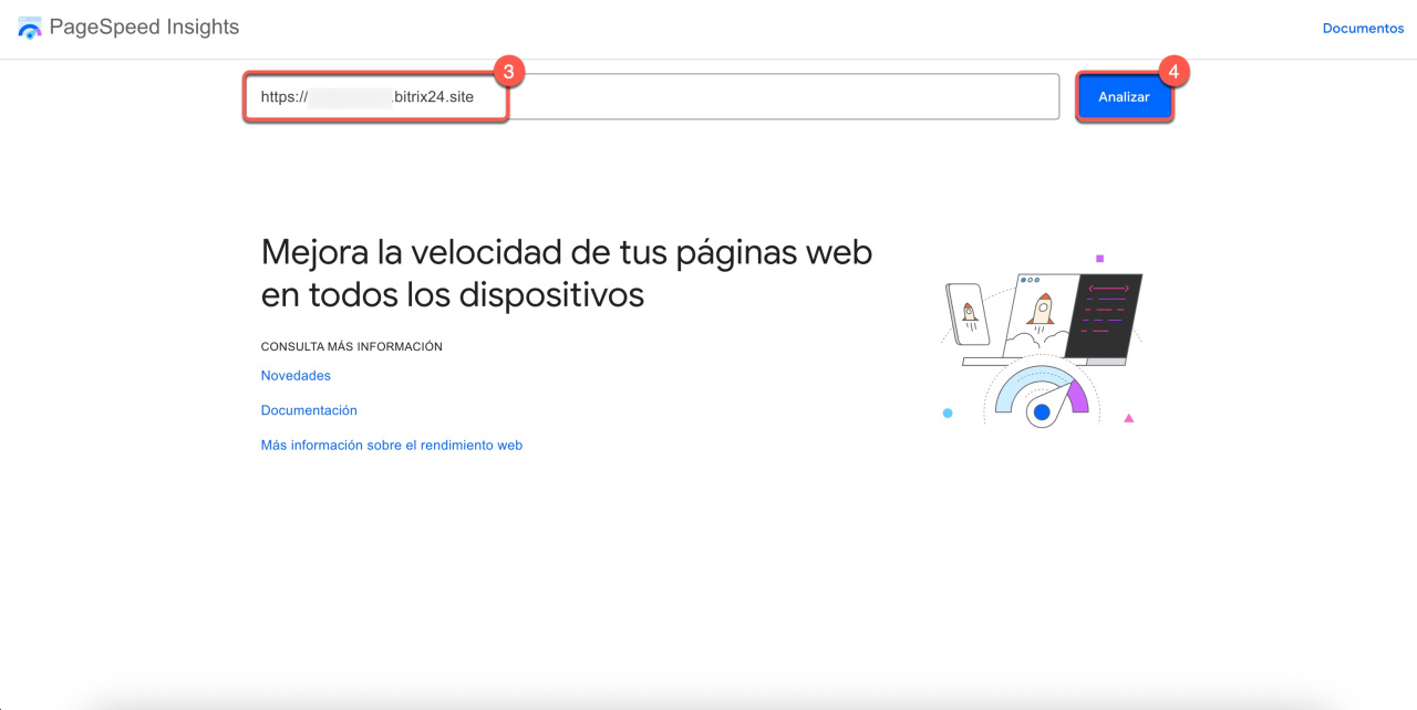 3-4. En la página de la herramienta de análisis, introduce la URL de tu sitio web e inicia la prueba para evaluar la velocidad.
