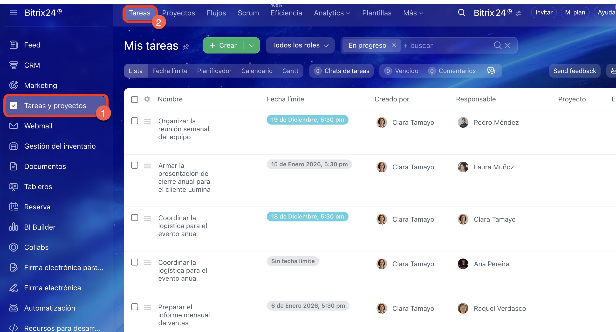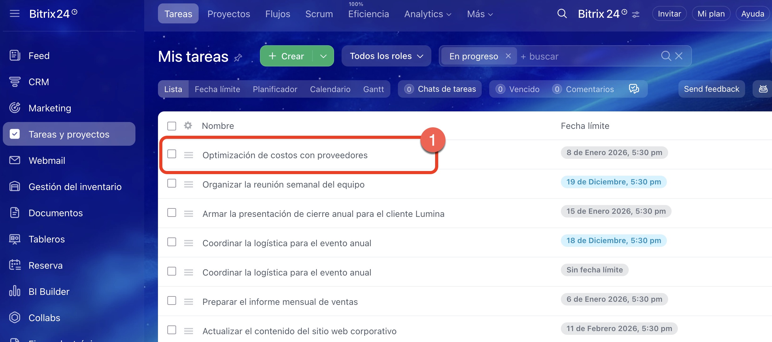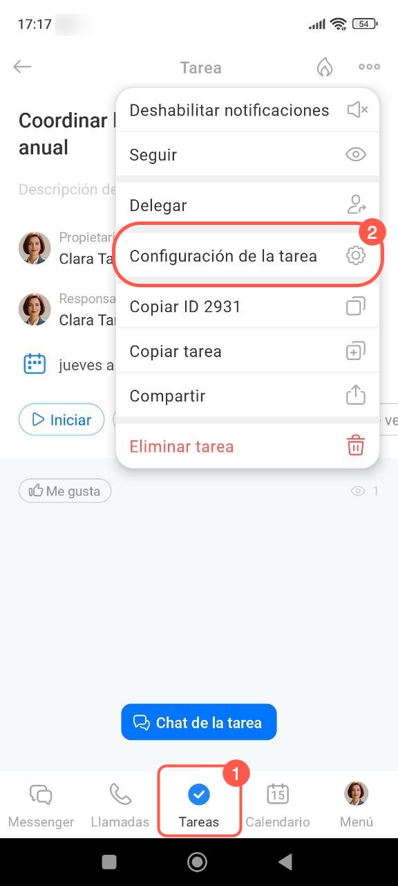 1–2. Ve a Tareas y abre la ficha de la tarea deseada.