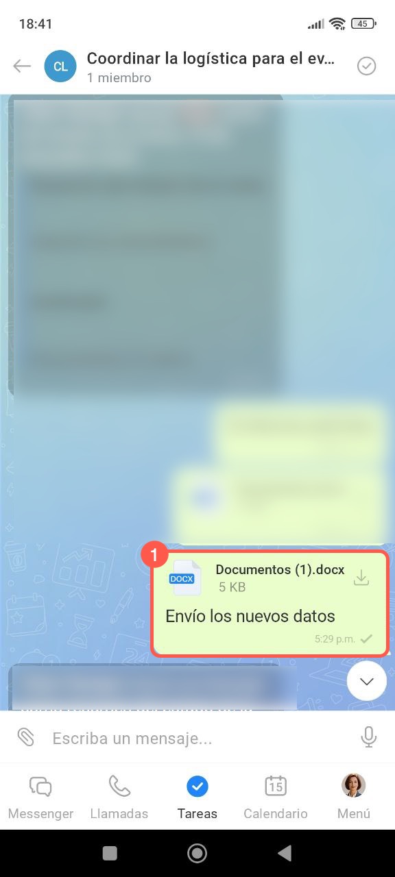 1. Envía un mensaje al chat y mantén presionado para abrir el menú contextual.