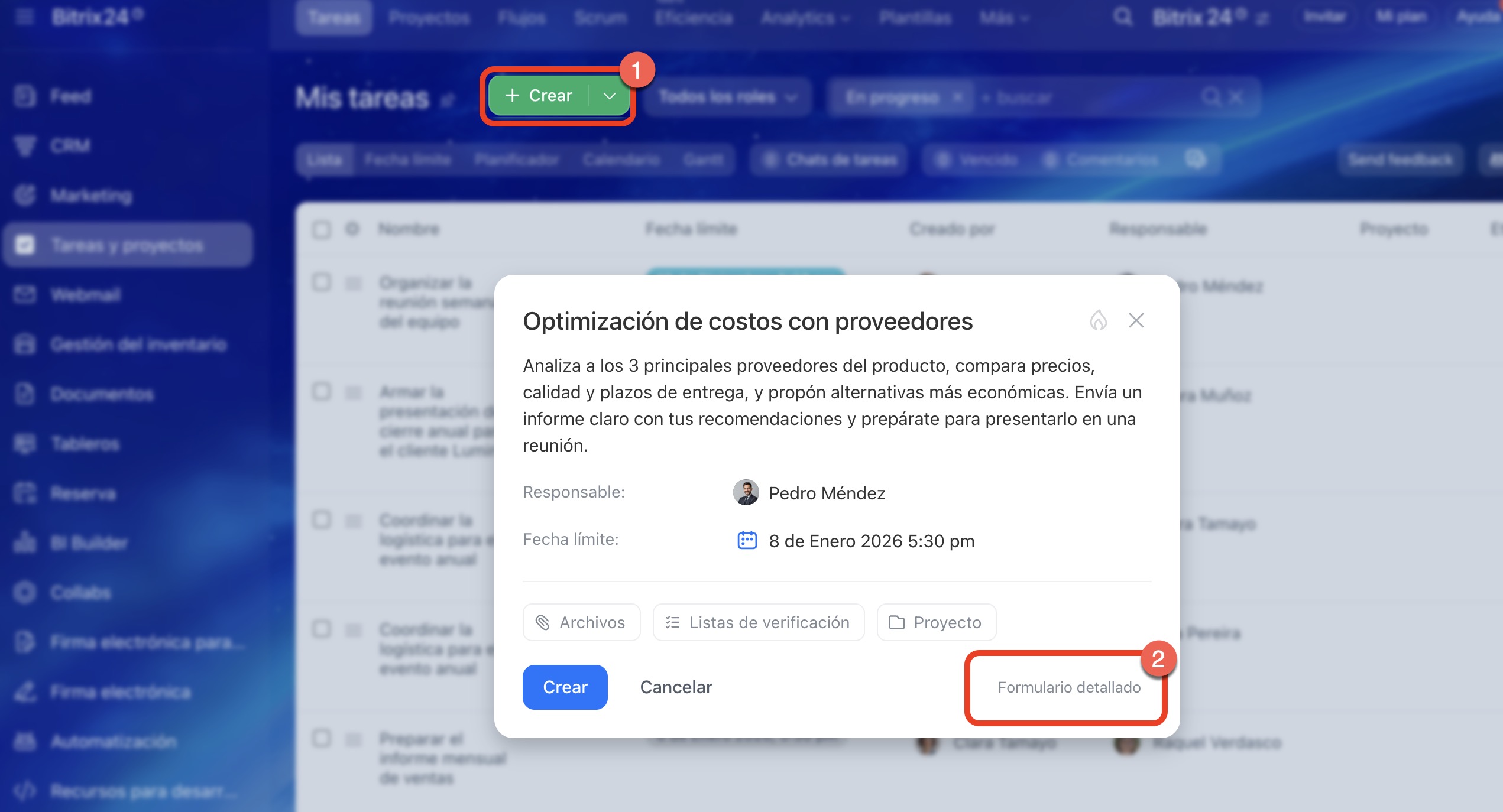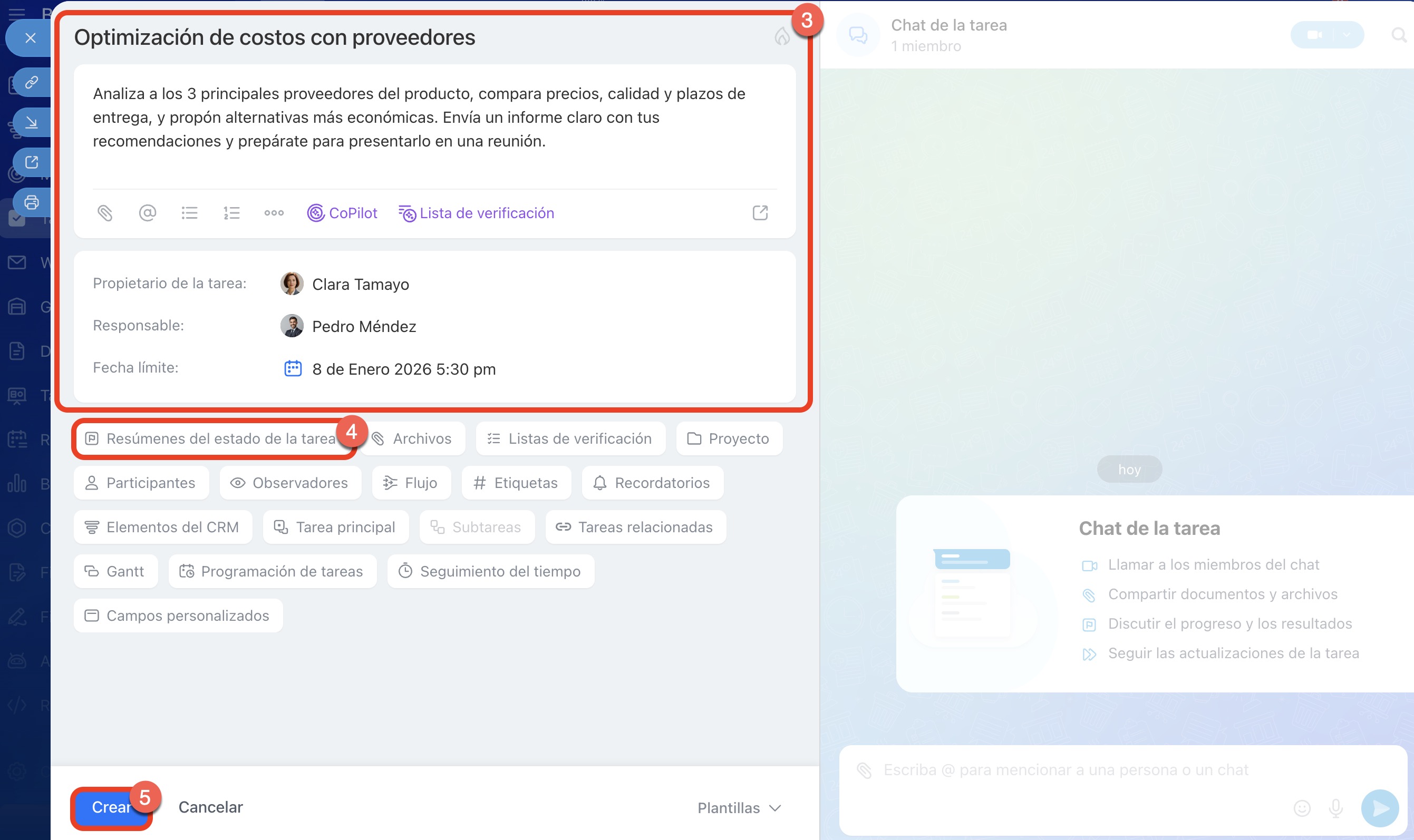 3. Completa los parámetros de la tarea: nombre, descripción, fecha límite, etc.