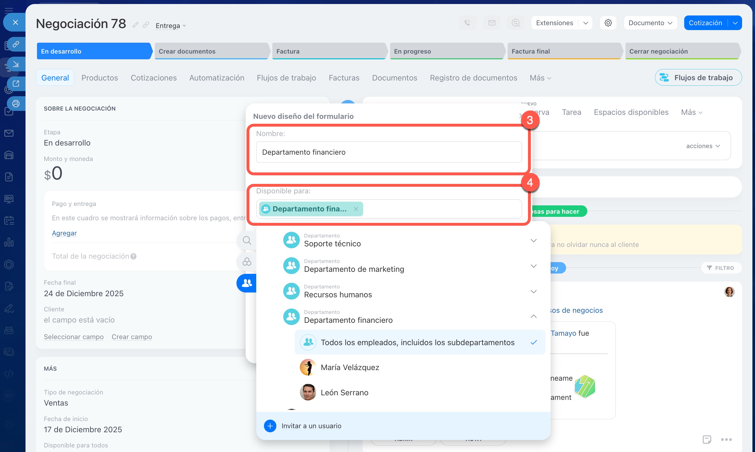 4. Selecciona los empleados o departamentos que tendrán acceso a ese tipo.