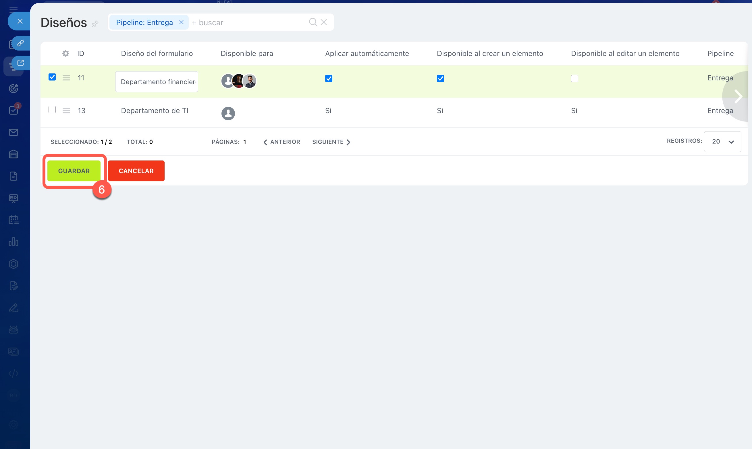 - Hacer que el diseño esté disponible al editar un elemento: los empleados podrán elegir este tipo de ficha al modificar los datos en la ficha del CRM.