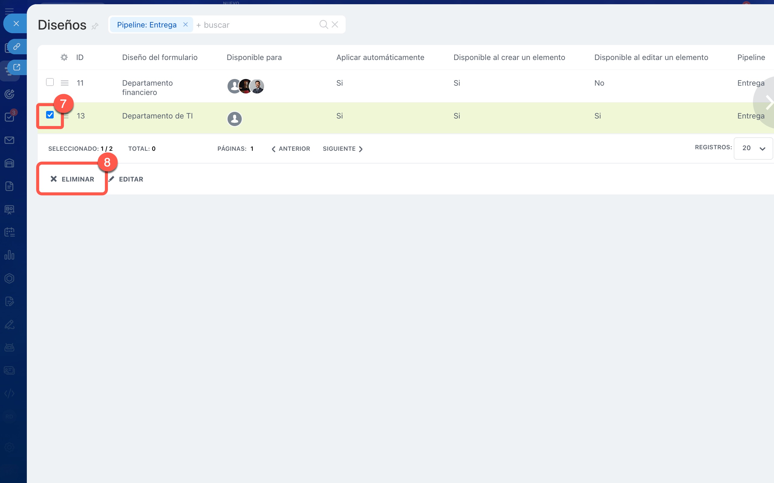 Cómo modificar o eliminar un tipo de ficha del CRM