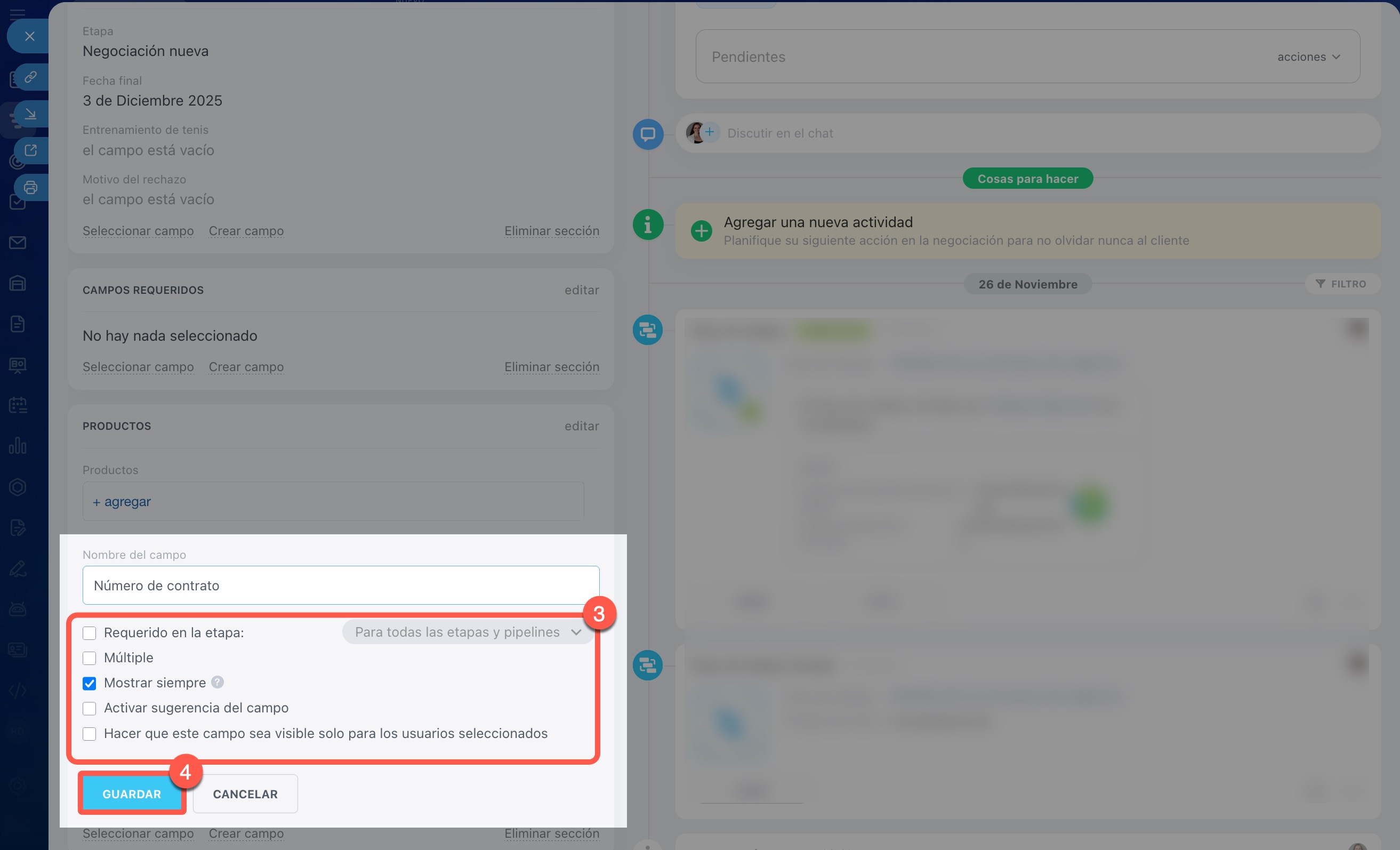 4. Guarda el campo: aparecerá en la ficha del CRM.