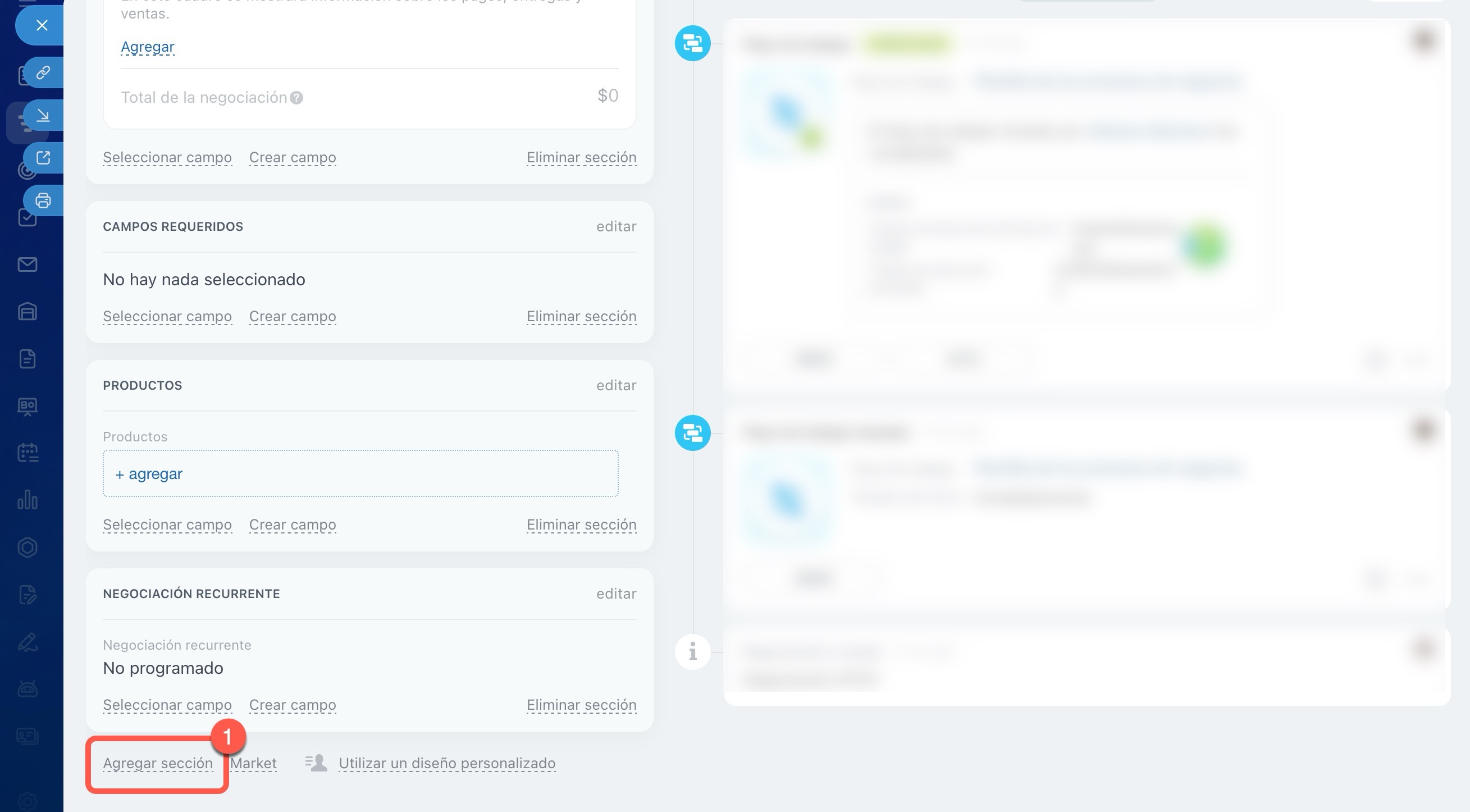1. Haz clic en Agregar sección al final de la ficha del CRM.
