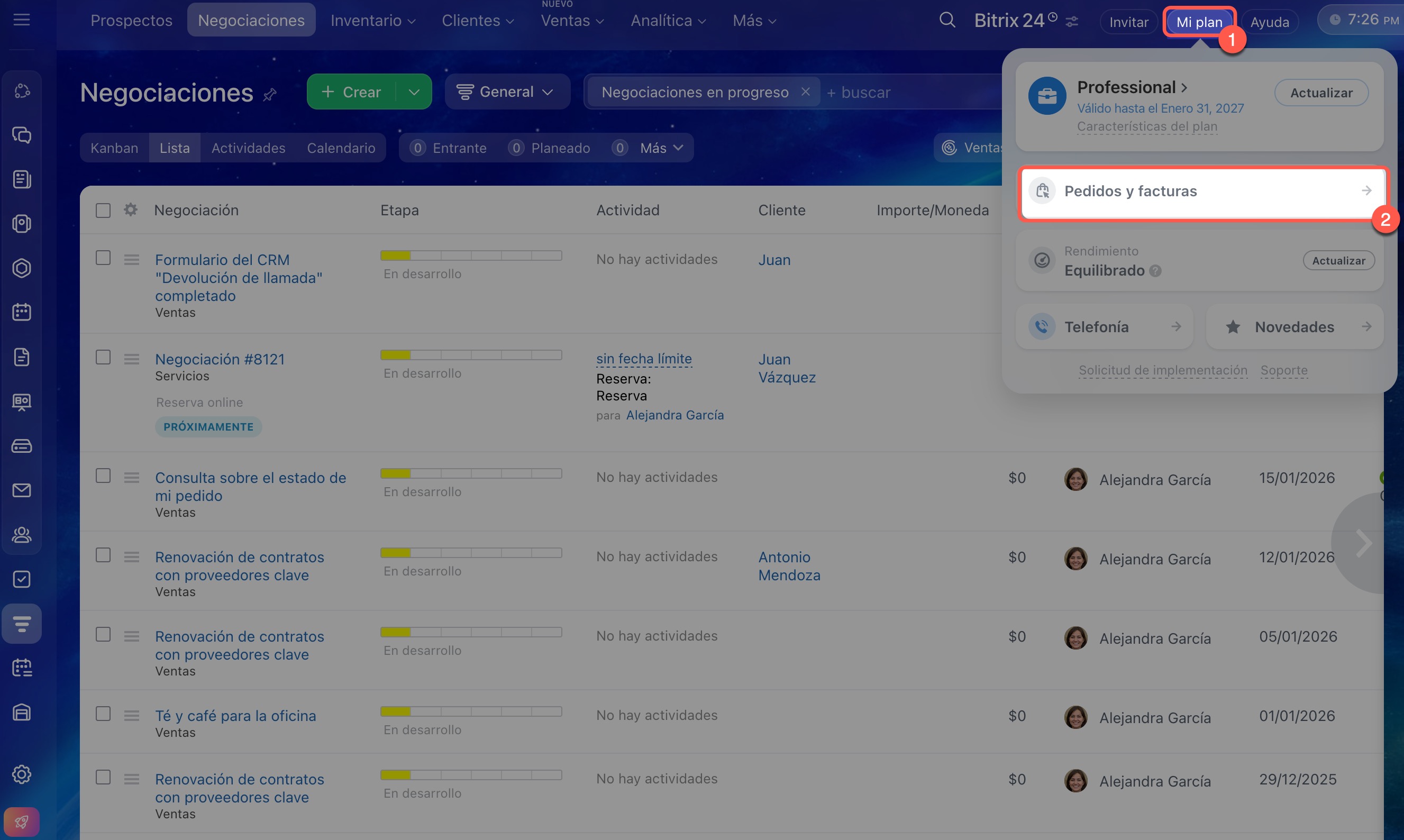 Si tu plan vence, Bitrix24 cambiará automáticamente al plan gratuito. Algunas funciones dejarán de estar disponibles. Además, algunas herramientas deberán desactivarse manualmente mediante la verificación de compatibilidad del plan.